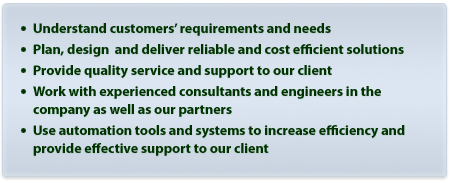 Our vision is to become the leading solutions provider in the area of Environmental monitoring system and Secure Identification system in Malaysia as well as in the region. With our systems and solutions we hope to achieve the common objectives of our customers to